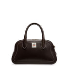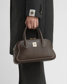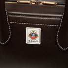The Unda top handle bag has a softly rounded trapezoid silhouette in Ebano kidskin with a grained finish. A Bally Crest patch in leather embellishes the front.