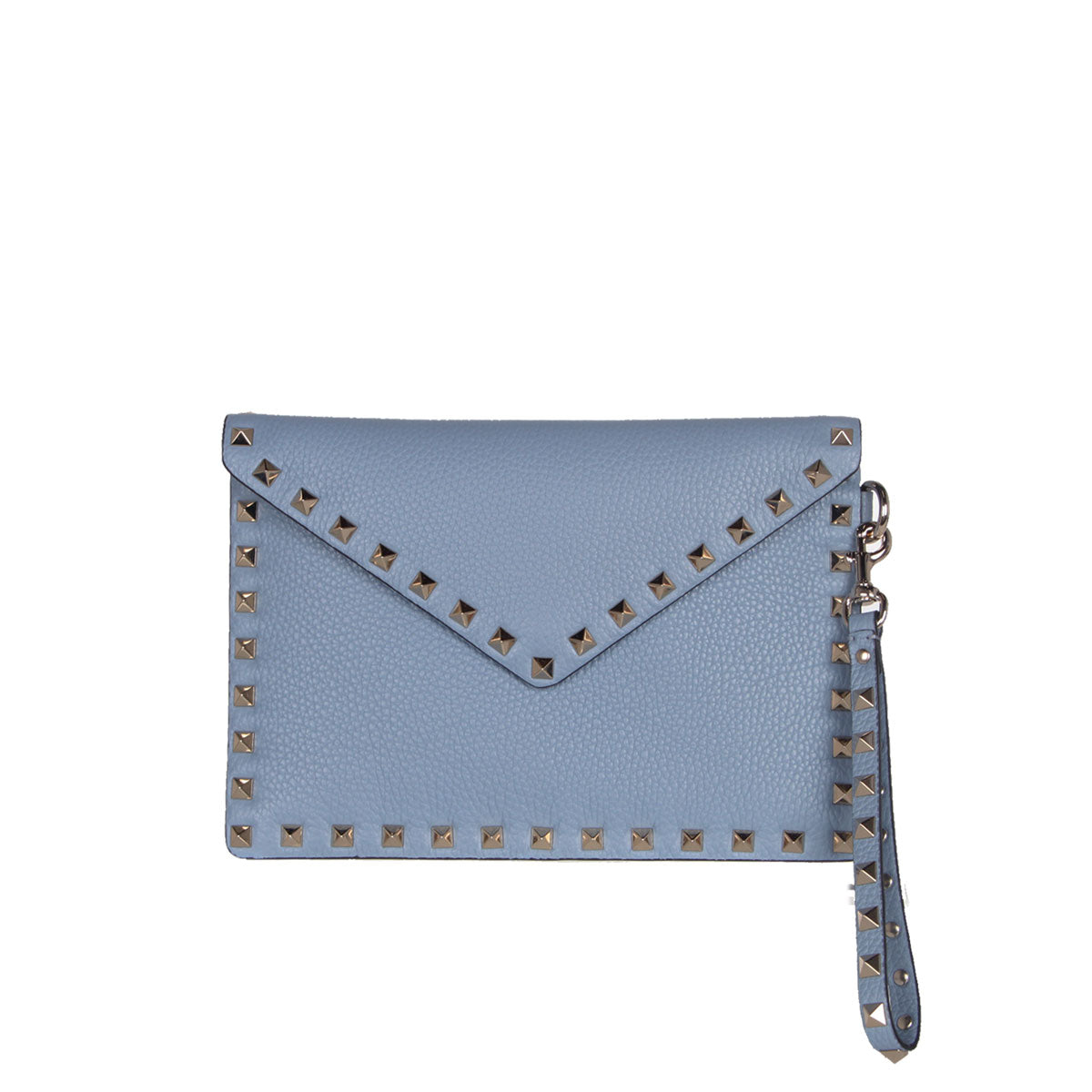 Valentino wristlet pouch is made with the signature rockstud in platinum hardware. The pouch features 4 card slots and closes with a magnetic flap.
