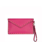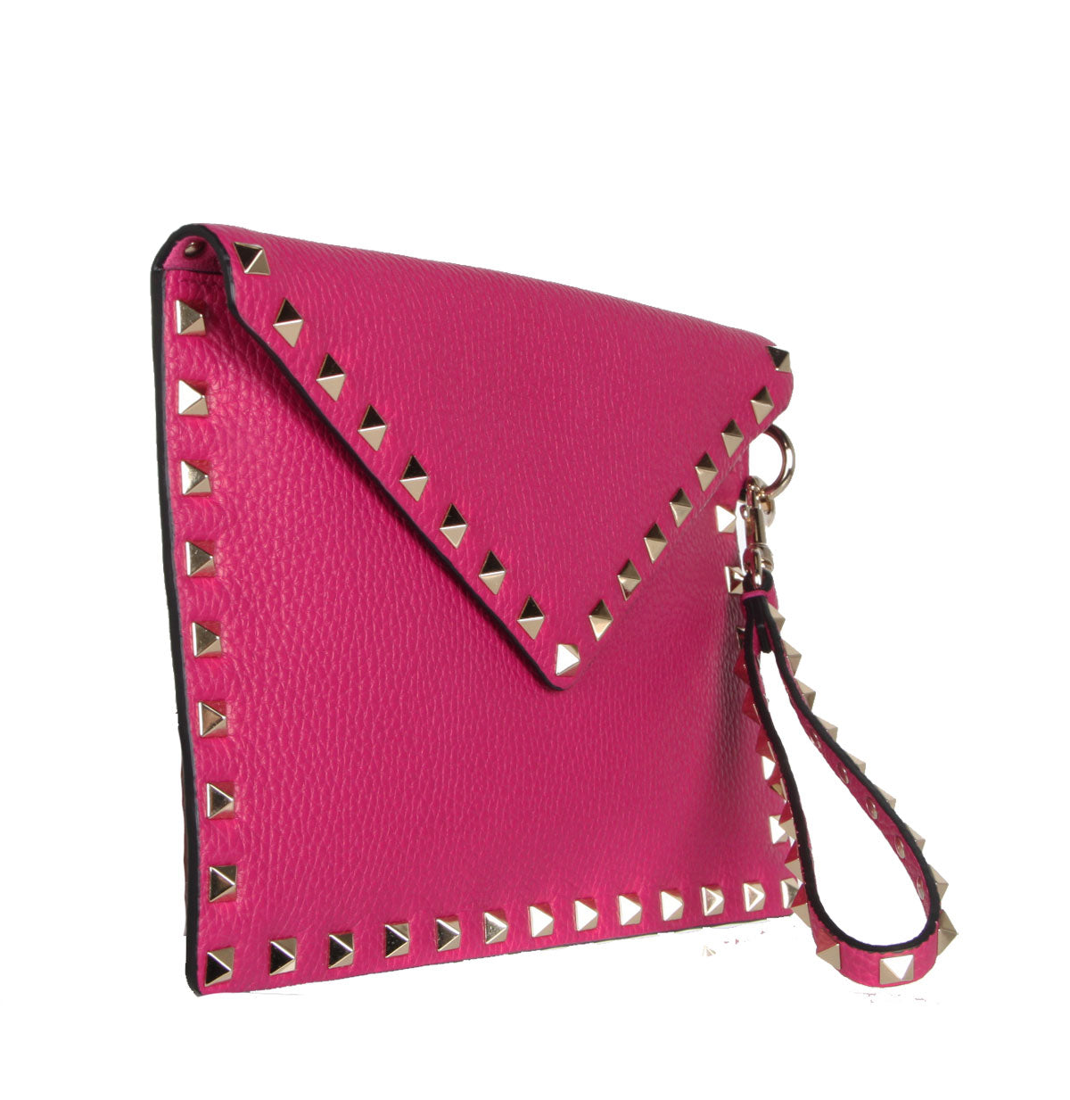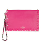 Valentino wristlet pouch is made with the signature rockstud in platinum hardware. The pouch features 4 card slots and closes with a magnetic flap.