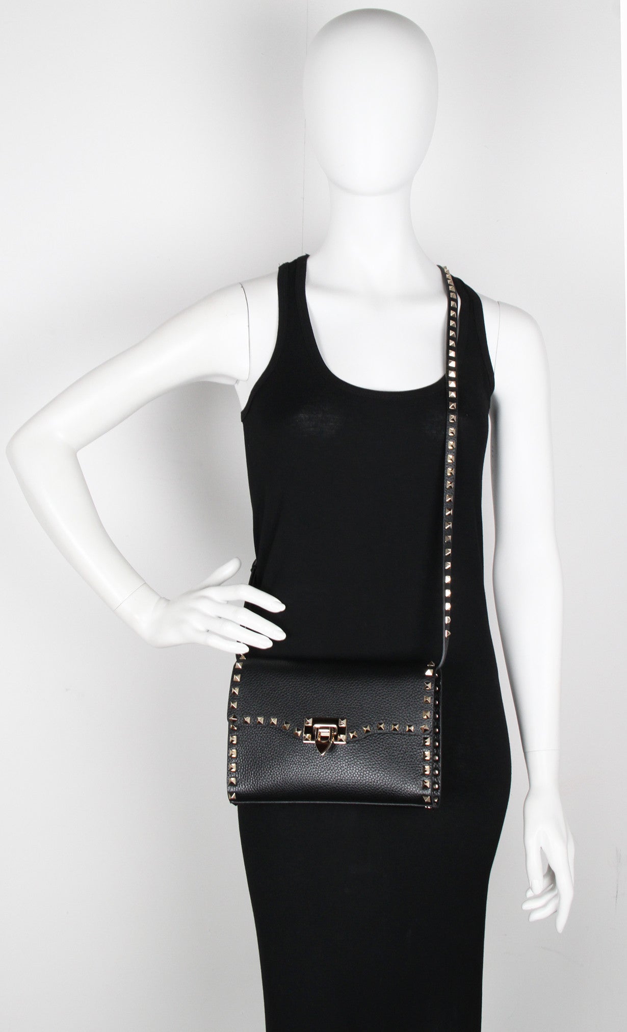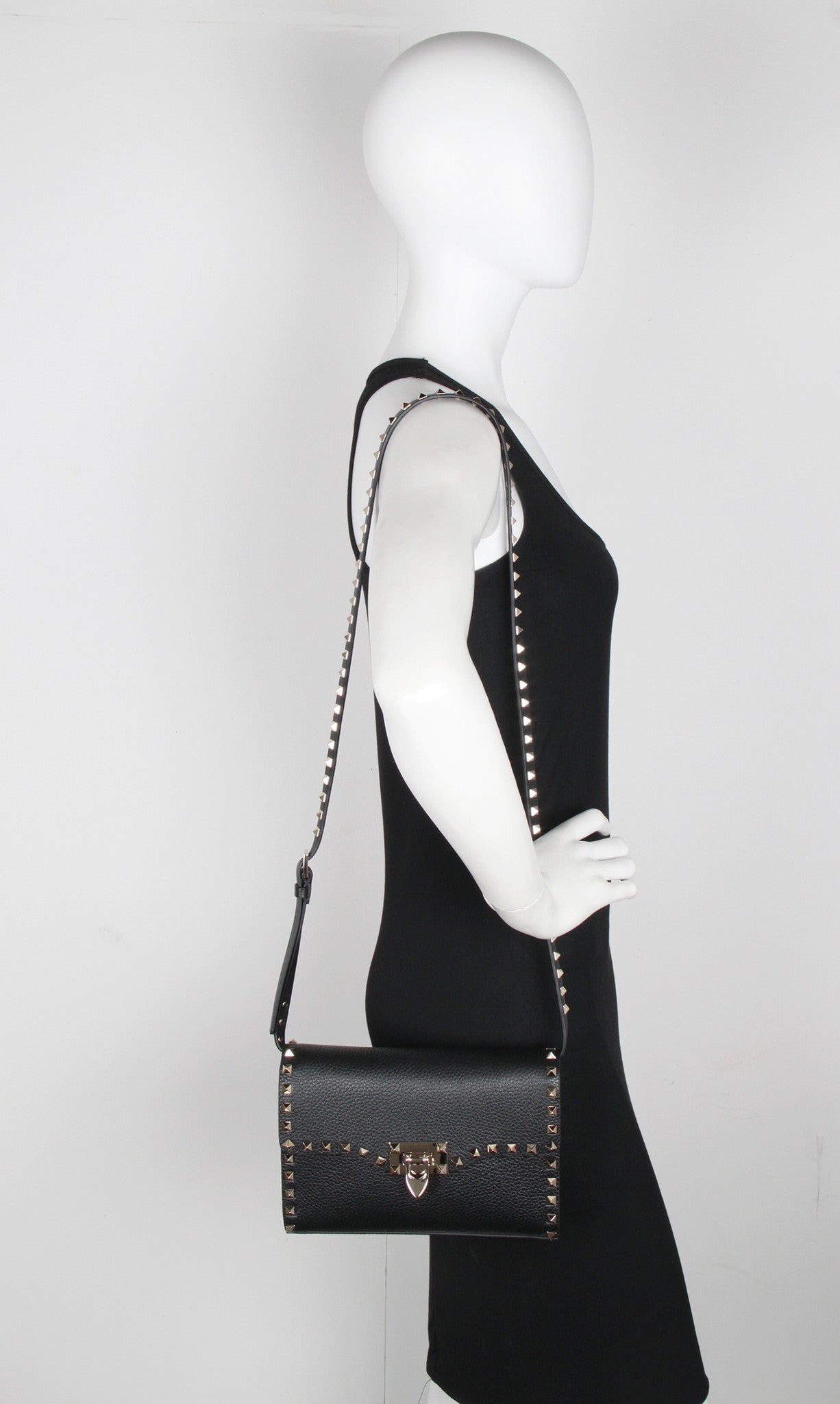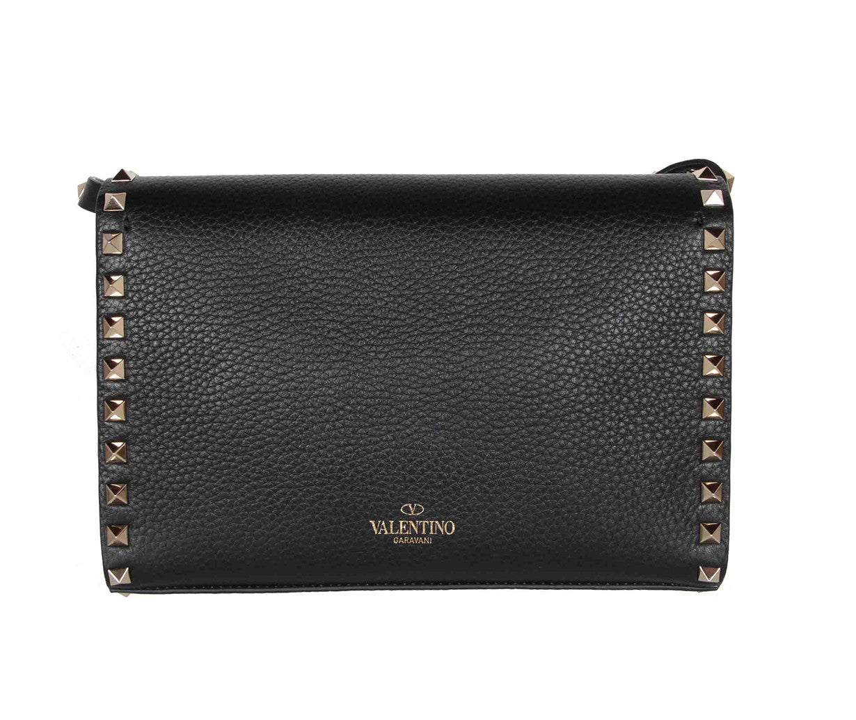 Valentino Garavani Rockstud rectangular shoulder bag from Valentino featuring a foldover top with flip-lock closure, platinum rockstud embellishments and buckle fastening. Finished with an adjustable and removable shoulder strap, an internal logo patch and a main internal compartment.
