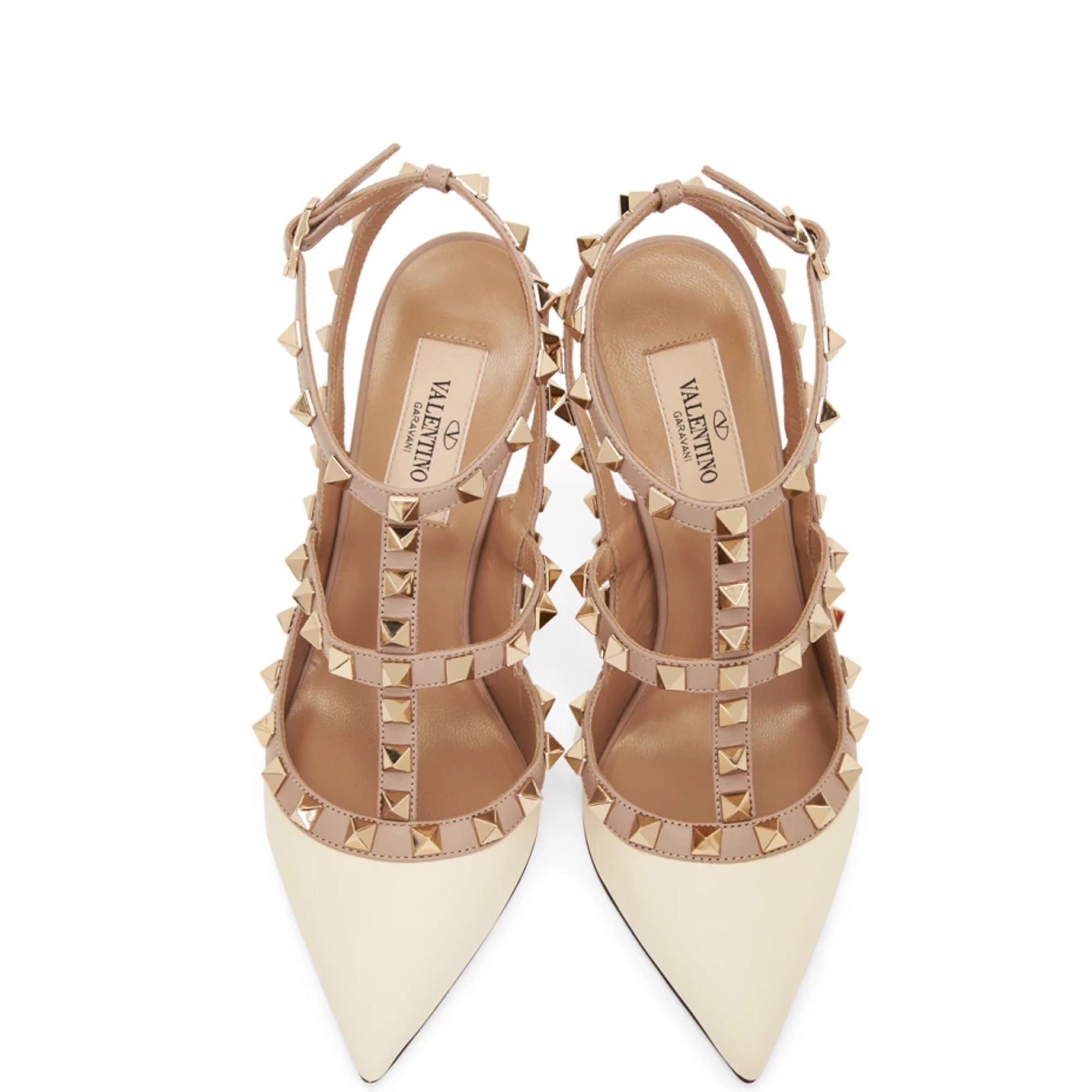 Valentino's signature Rockstud slingback heels in nappa leather featuring pale gold tone pyramid studding.