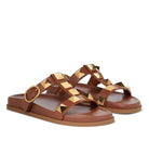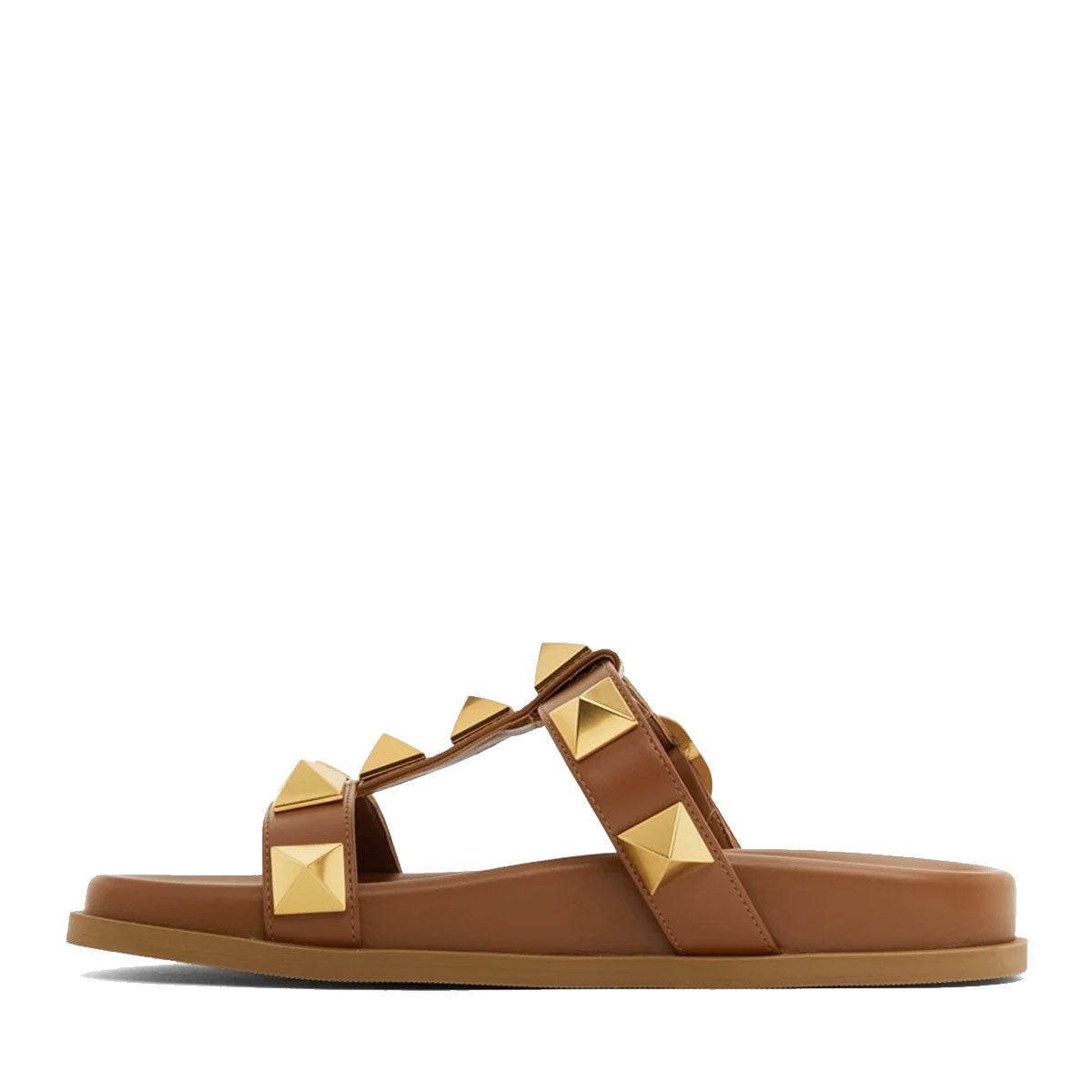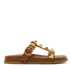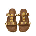 Valentino Garavani Roman Stud slide sandal with anatomically shaped footbed in calfskin and embellished with antique gold-tone maxi studs. in nappa. Adjustable strap with maxi buckle fastening. Maxi studs 18x18 mm / 0.7x0.7 in. with an antique brass finish
