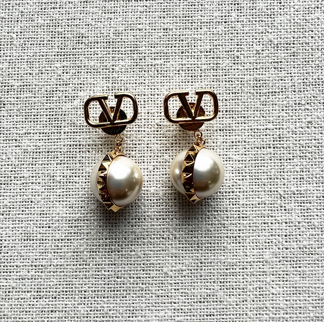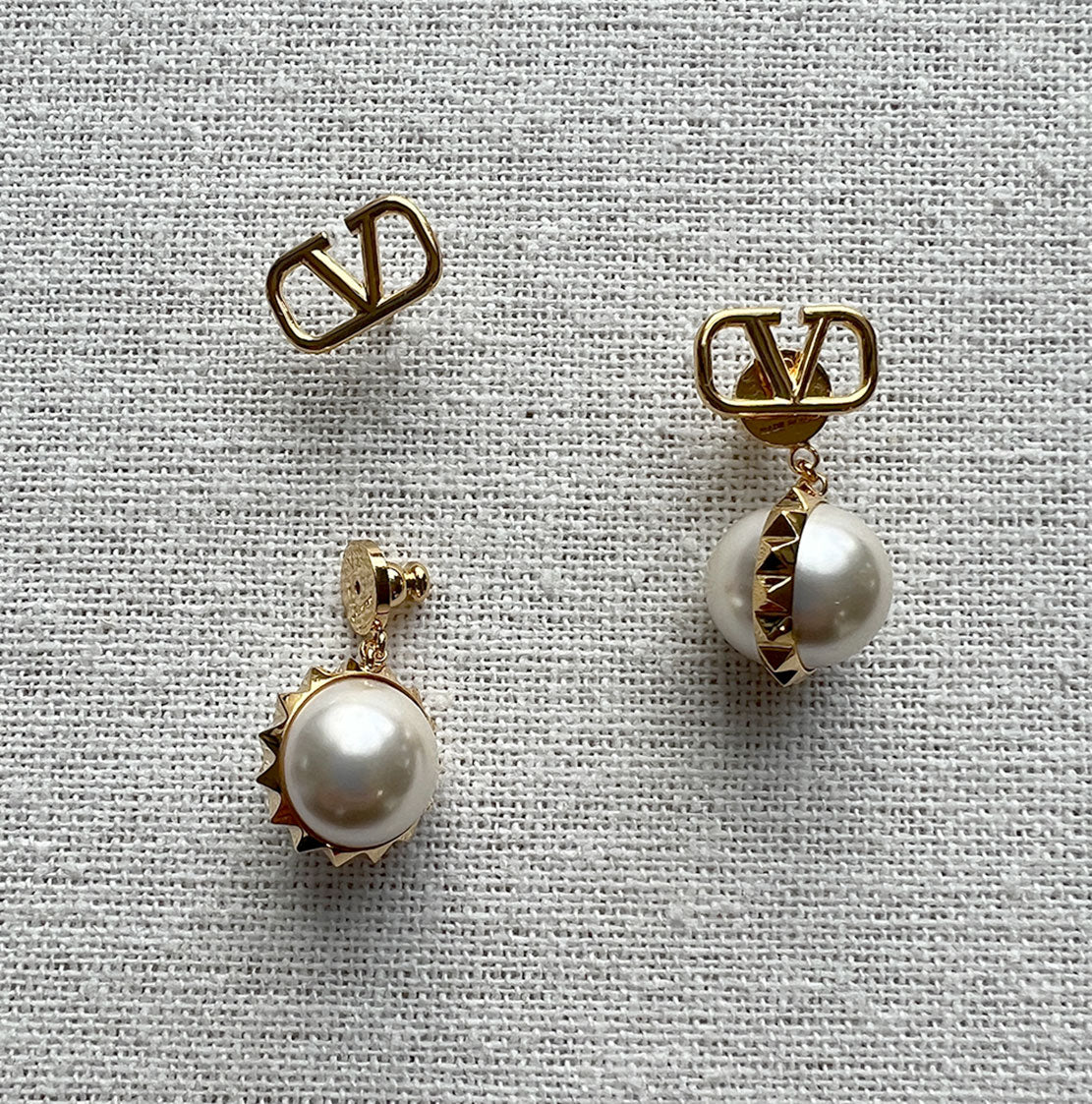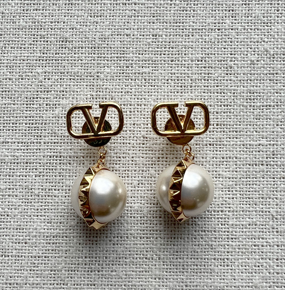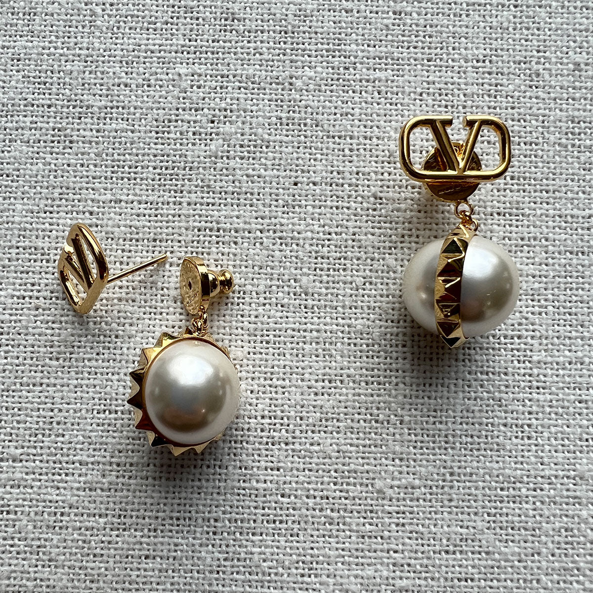 Valentino Garavani VLogo Signature metal rockstud earrings with cream Swarovski® pearls.