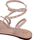 Valentino Rockstud flair flip-flop sandal with wrap around ankle straps. Finished with signature rockstud detailing and adjustable straps with buckle.