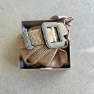 Created by the skilled hands of the artisians of Caprarola covering a silk belt with a glittering of metallic mesh of crystals.