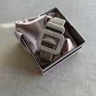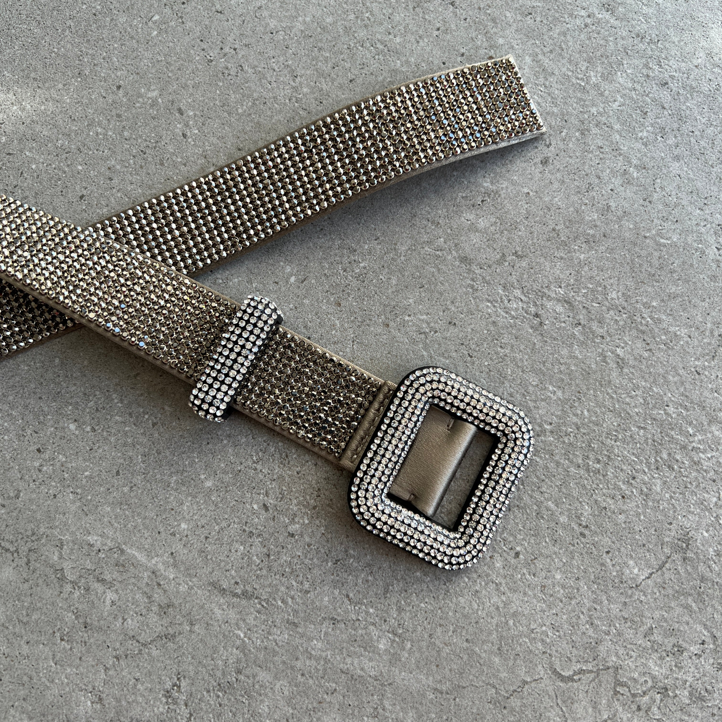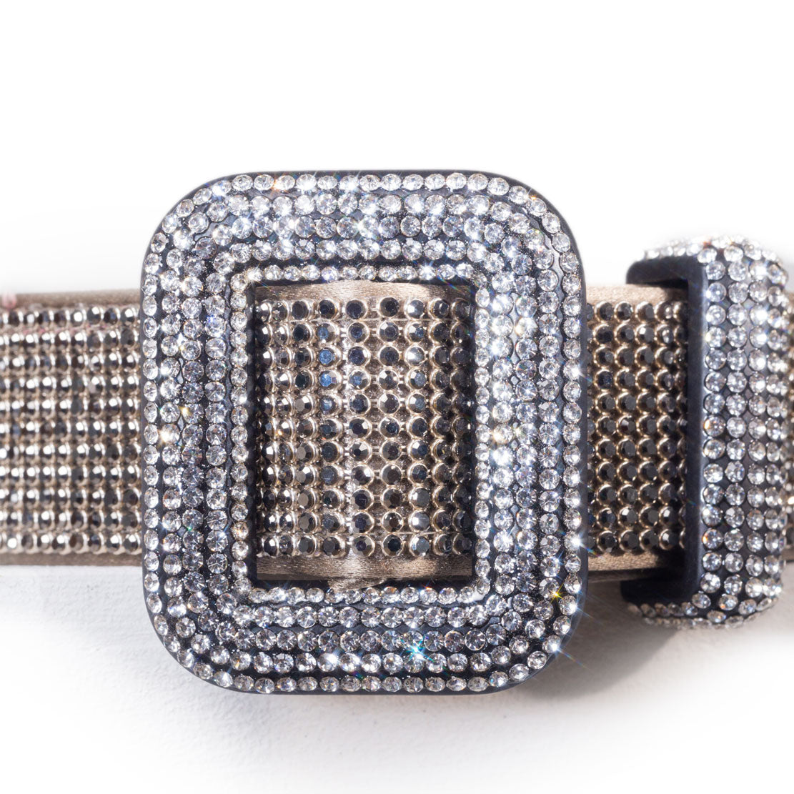 Created by the skilled hands of the artisians of Caprarola covering a silk belt with a glittering of metallic mesh of crystals.