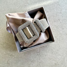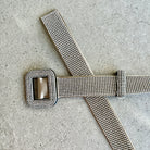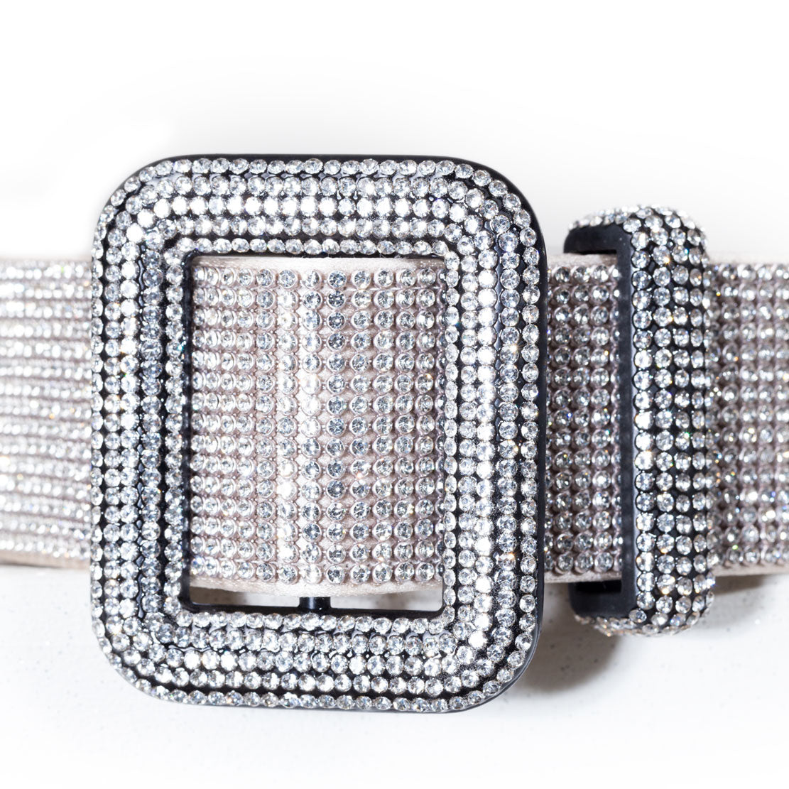 Created by the skilled hands of the artisians of Caprarola covering a silk belt with a glittering of metallic mesh of crystals.