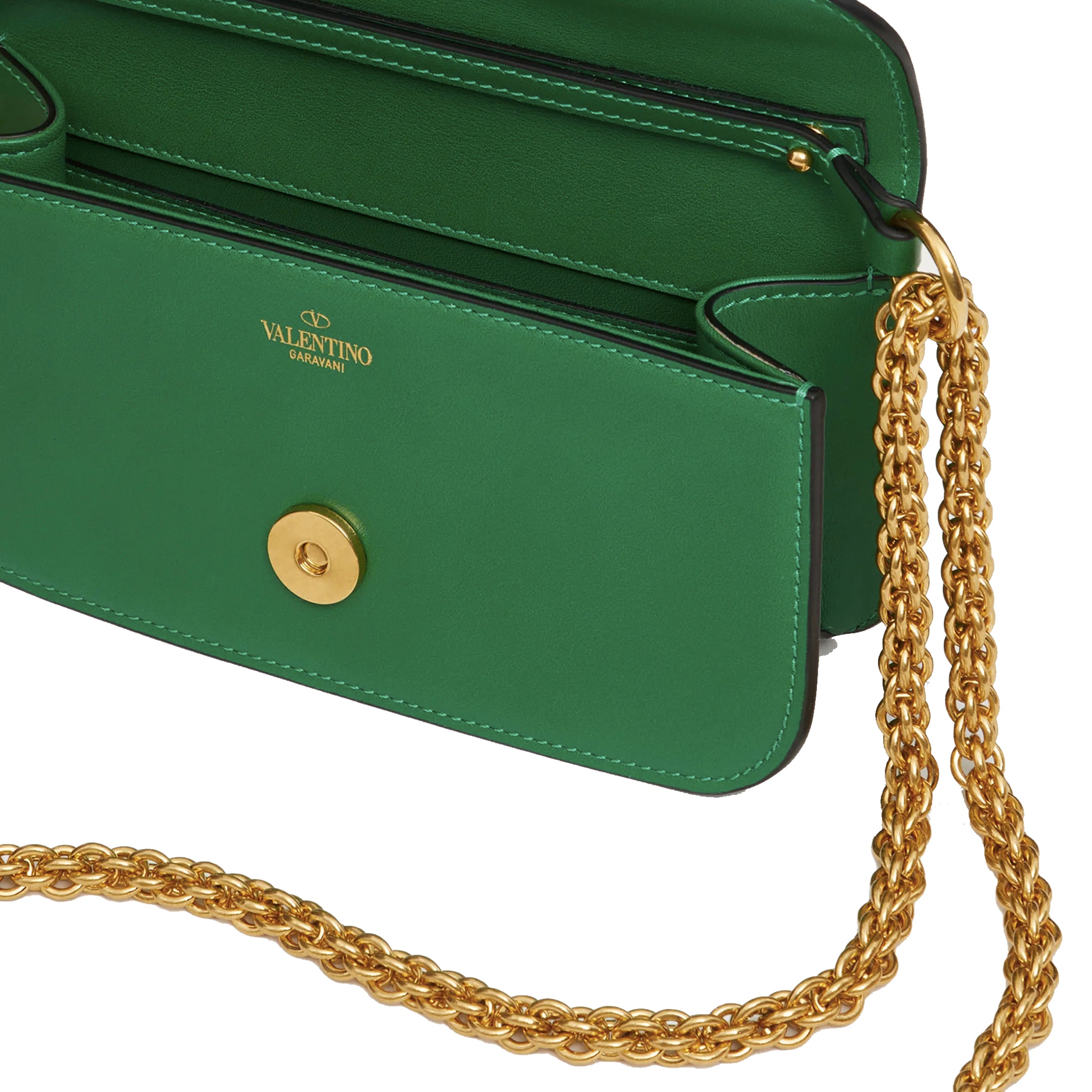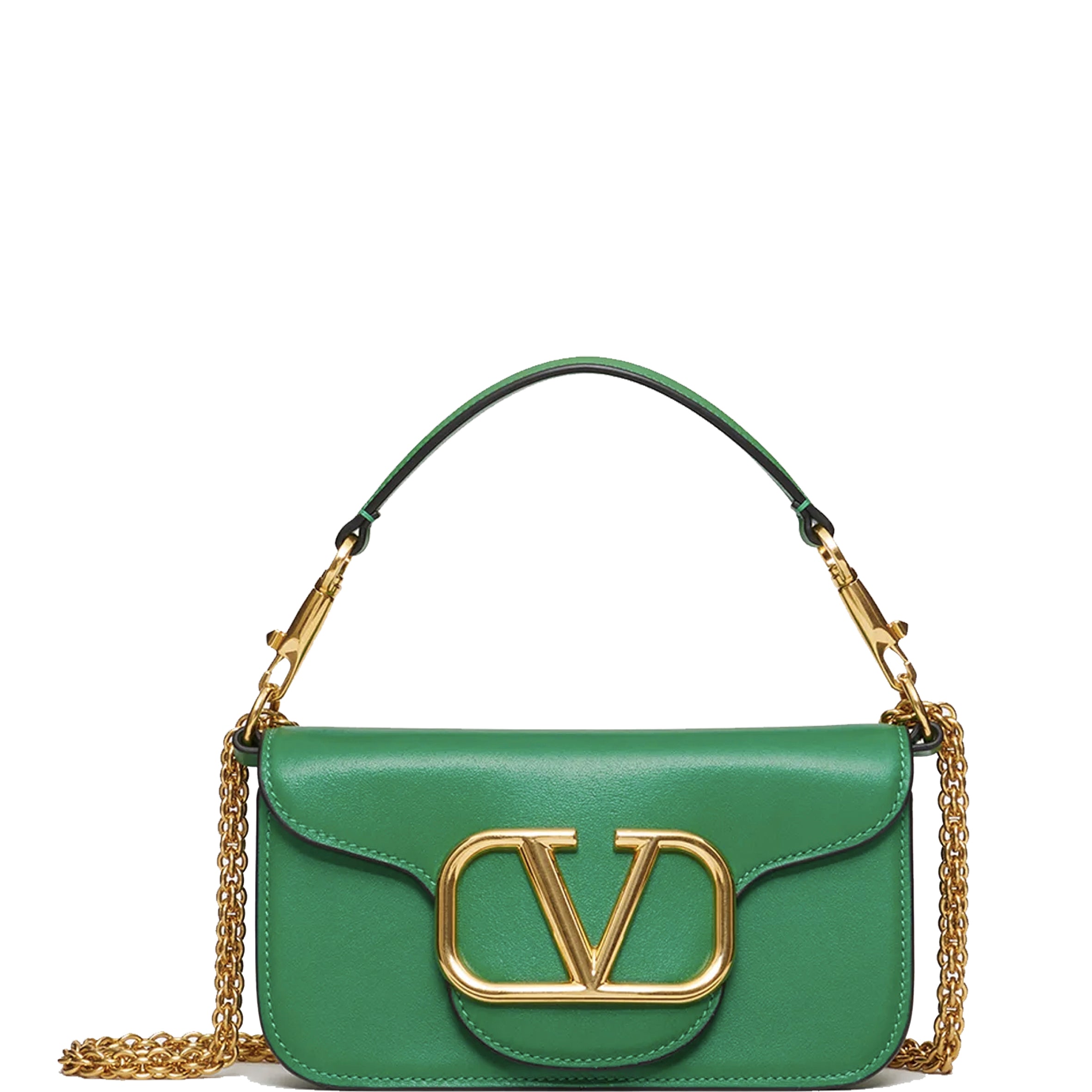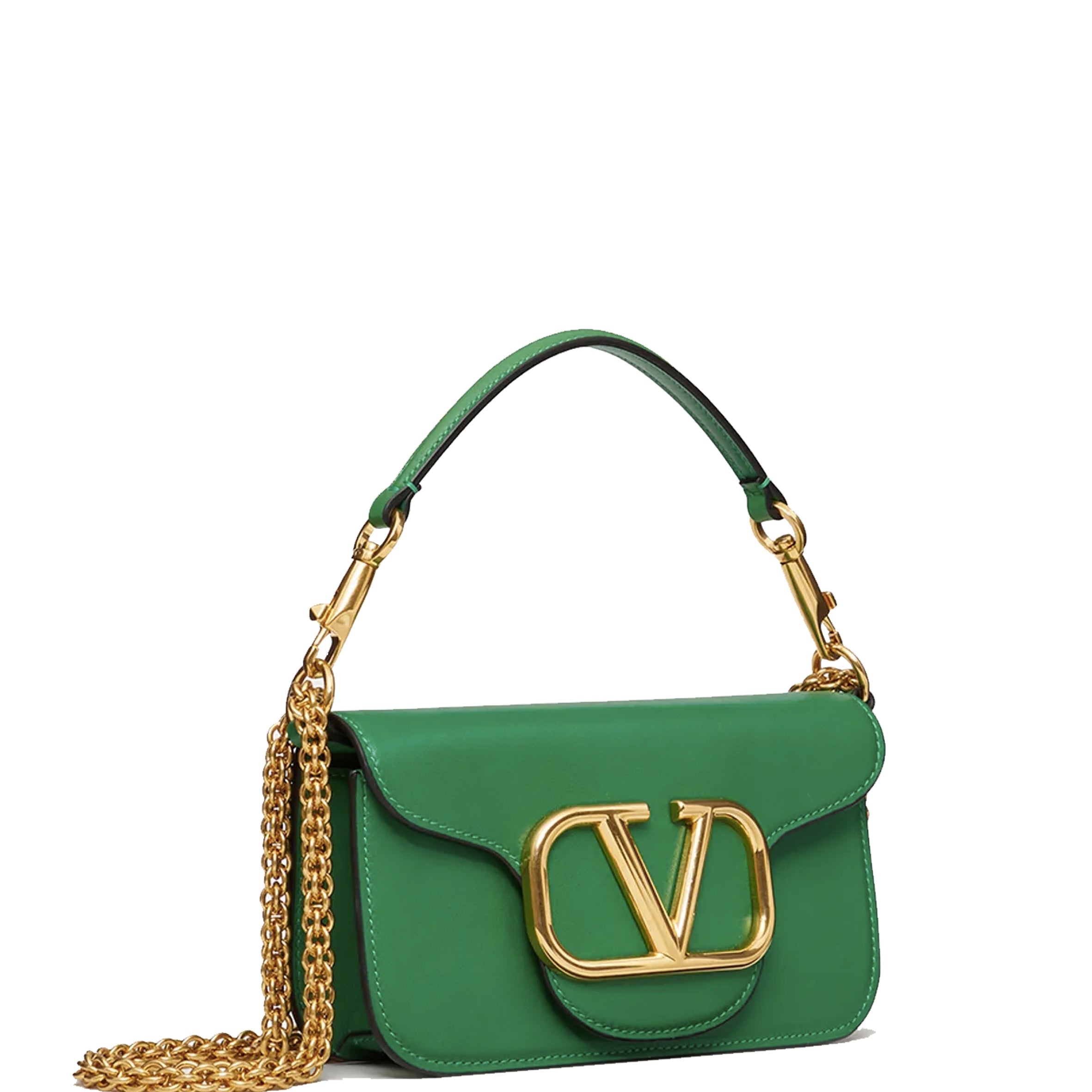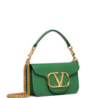 Valentino Garavani Locò small shoulder bag in calfskin with metallic VLogo Signature detail. Equipped with both a detachable sliding chain strap and a detachable handle, this accessory can be worn as a crossbody/shoulder bag or used as a handbag.