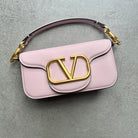 Valentino Garavani Loco women's small shoulder bag in calfskin leather with VLogo Signature metallic element. Equipped with a detachable sliding chain strap and a removable handle, this accessory can be worn as a crossbody/shoulder bag or carried as a handbag.
