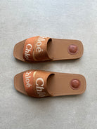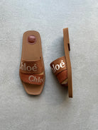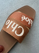 These Woody mules are crafted from different-sized ribbons in lower-impact linen, finished with contrast Chloé logo embroidery.