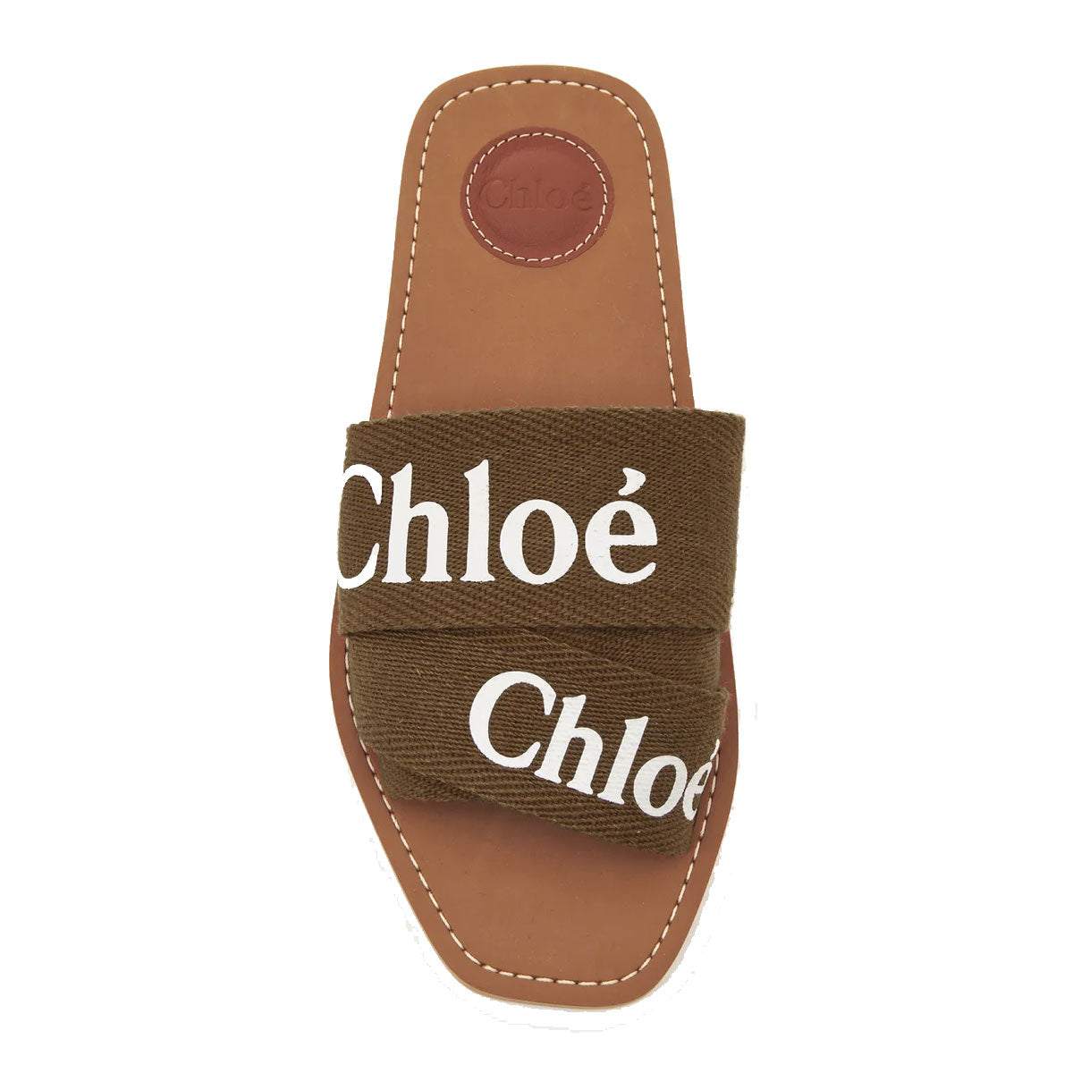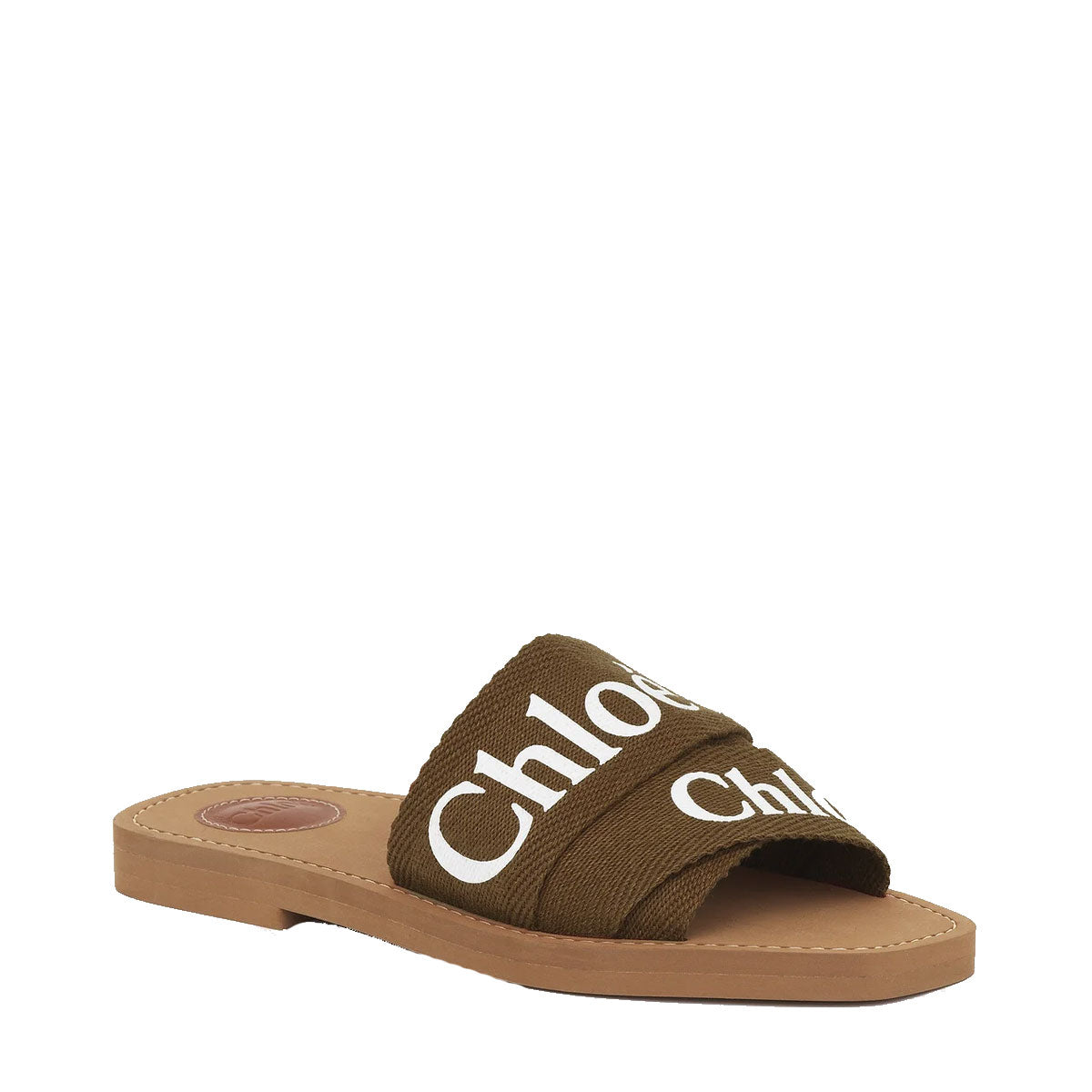 This Woody flat mule reveals an interplay of different-sized cotton canvas ribbons with the Chloé logo in striking contrast. Together, they form a large upper for a comfortable fit.
