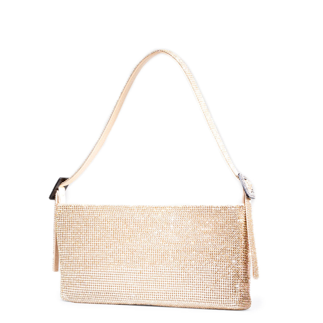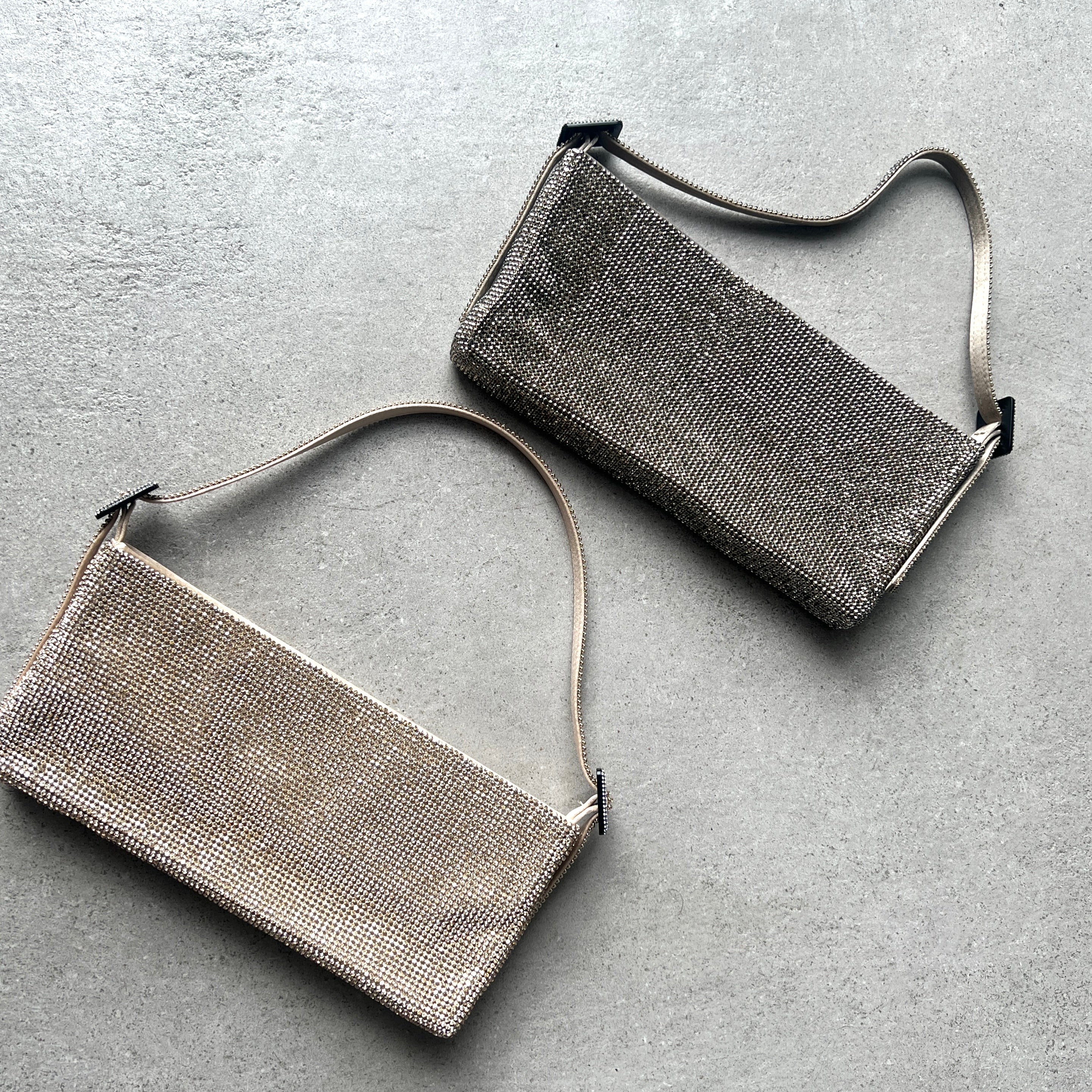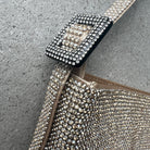 Designed to keep only what is really important, this bag is a mini clutch made with a soft net of crystals lined with denim, entirely hand-sewn.