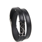 Saint Laurent double wrap around leather bracelet with YSL interlocking signature at centre with Saint Laurent engraved square clip clasp.