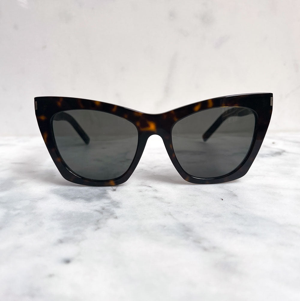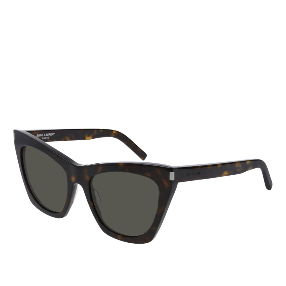 Thick-framed sunglasses featuring nylon lenses. Saint Laurent signature engraved arms. Frames are compatible with prescription lenses.