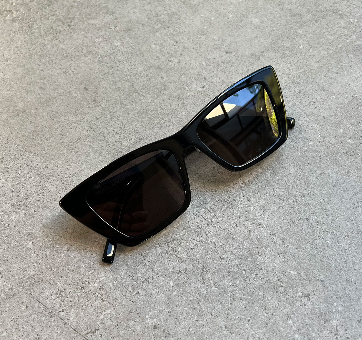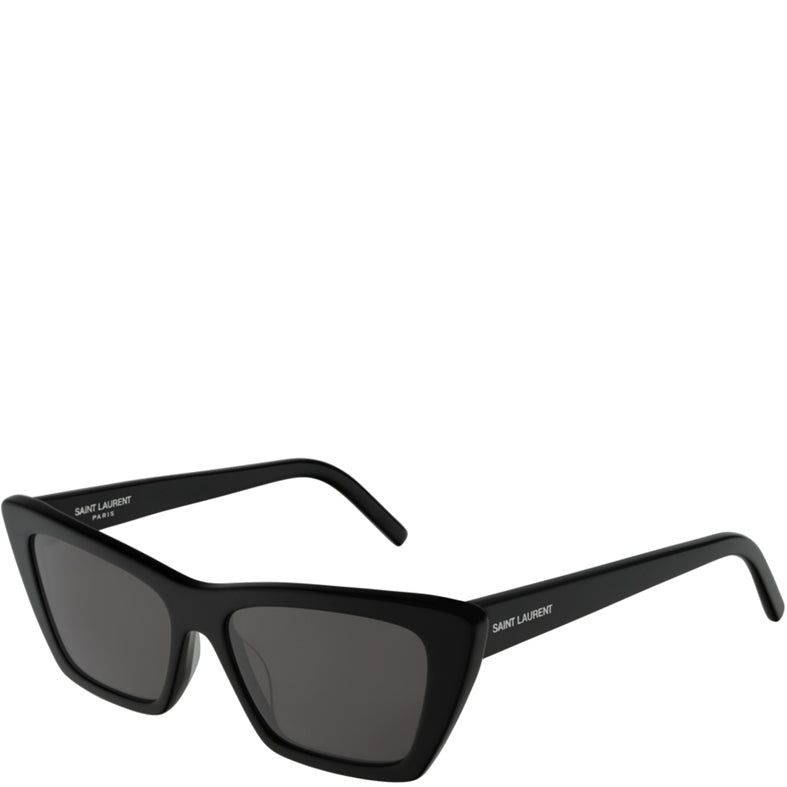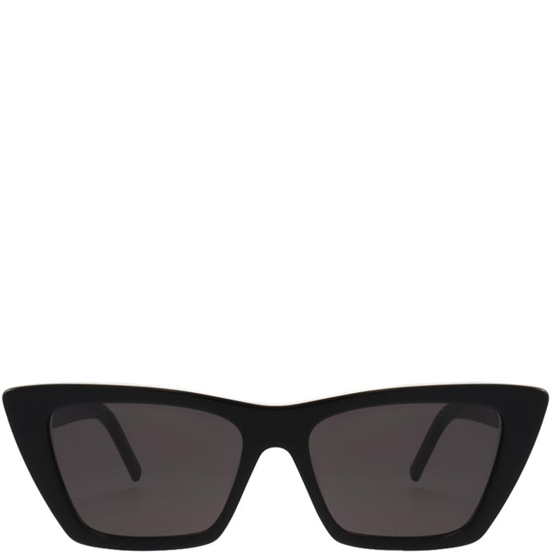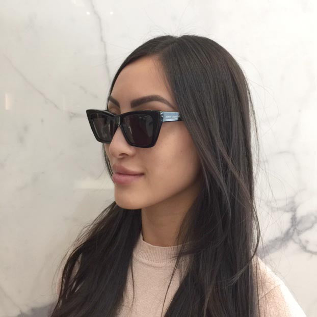 A classic cat eye style with a glossy black frame, stamped with the label's logo in silver along the arms and fitted with tonal lenses.