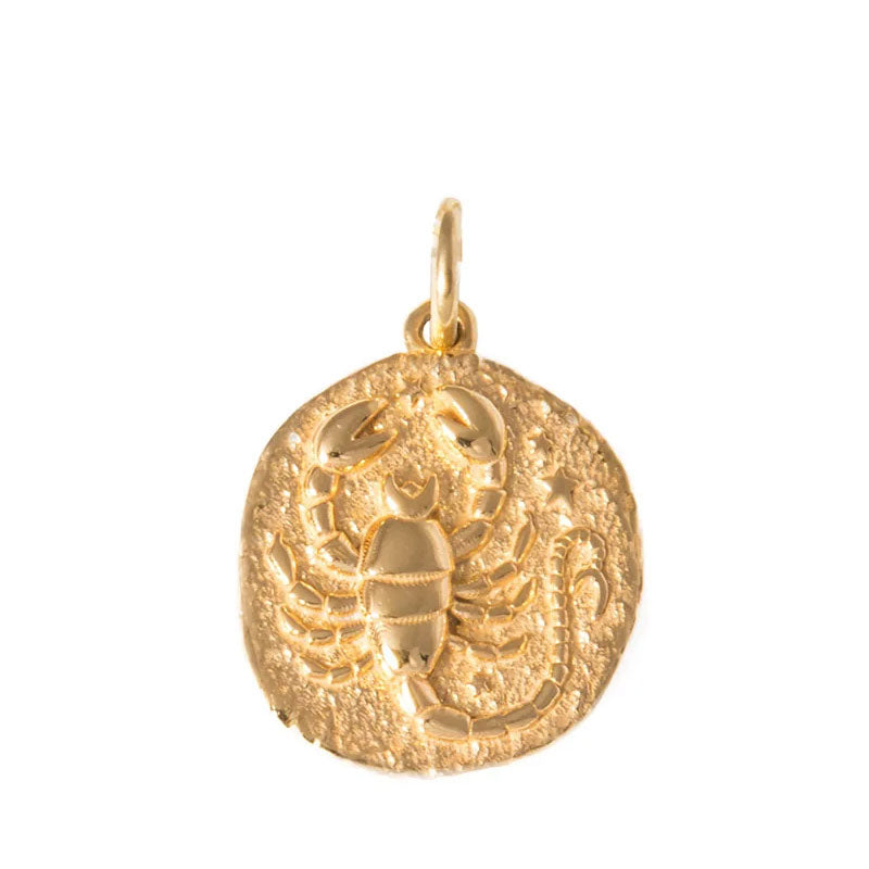 Handcrafted 24ct gold plated pendant featuring a hand-drawn zodiac design. The name of the sign is embossed on the back making it ideal to wear from both sides.